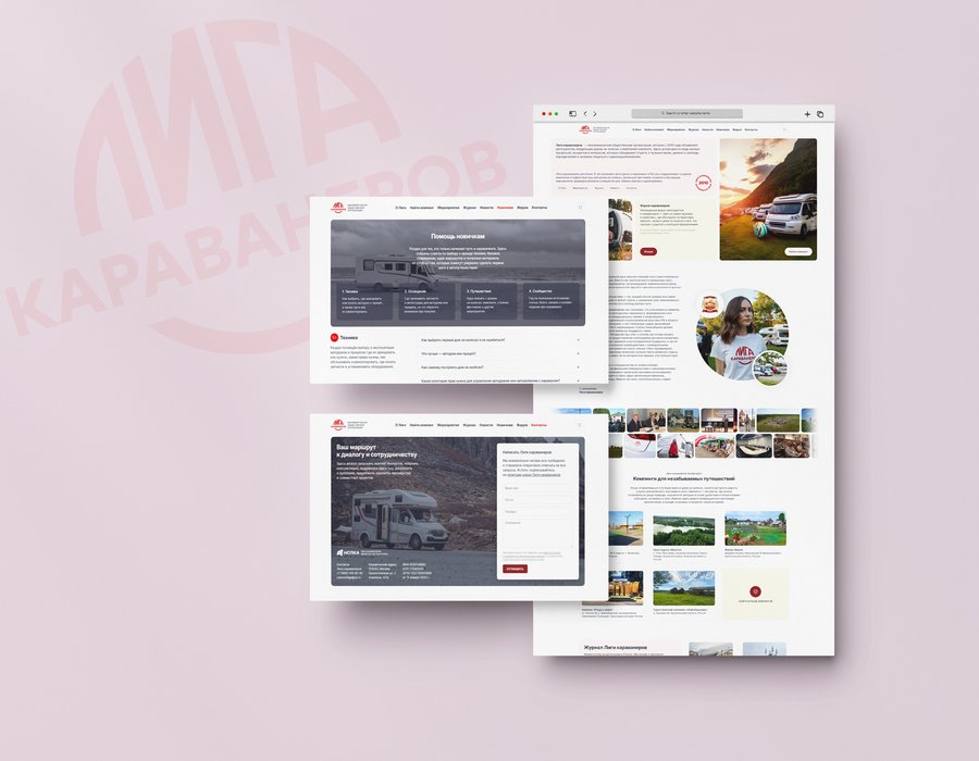 При этом сохранена преемственность стиля: традиционные красные оттенки и песочно-жёлтые акценты, знакомые пользователям ещё по старому сайту Лиги караванеров, получили современное воплощение. Это обеспечивает узнаваемость организации и ощущение непрерывности развития.